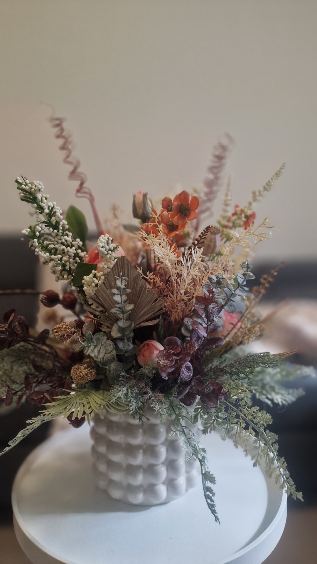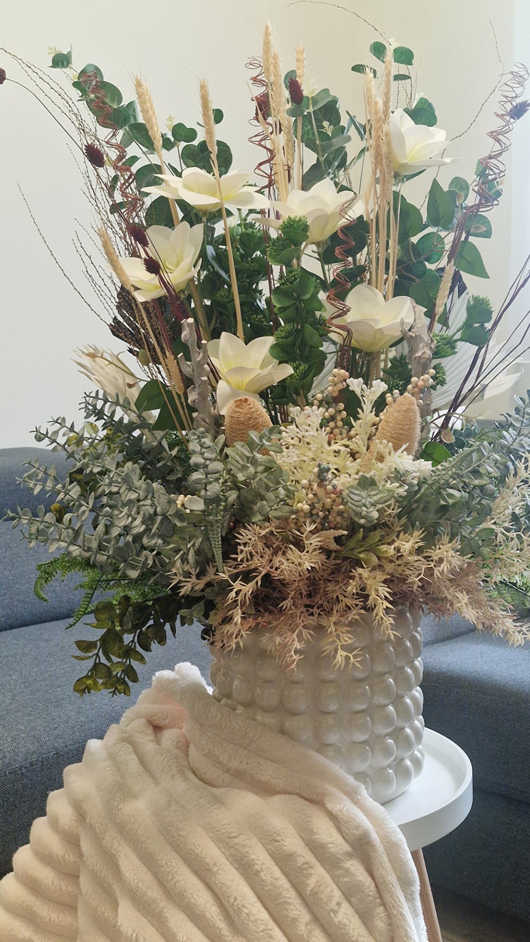 Hiszek az időtálló szépség erejében. Éppen ezért minden egyes darab – az asztali kompozícióktól az ajtódíszekig – egyedi termék, amelyet kézműves szakértelemmel és maximális odafigyeléssel készül. A prémium selyemvirágok felhasználásával olyan dekorációkat alkotok, amelyek nem hervadnak el, így otthona, vagy üzleti tere hosszú távon is elegáns és kifinomult marad.