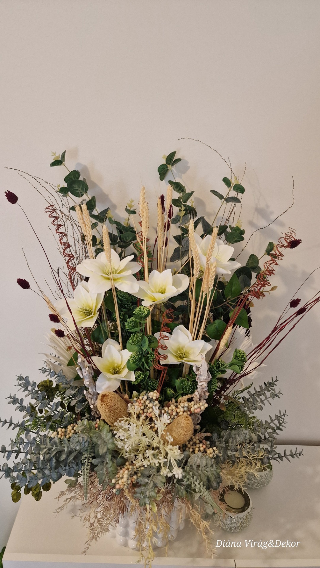 Nagy méretű virágdísz kerámia edényben (80 cm magas)